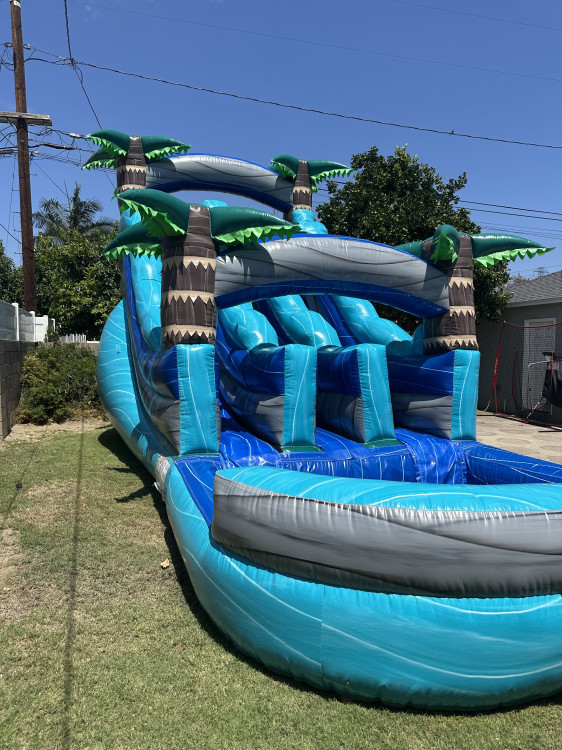 Turn up the excitement at your next event with our Dual Lane 16ft Water Slide — the perfect combination of speed, splash, and friendly competition. Designed with vibrant tropical colors and two side-by-side sliding lanes, this inflatable lets guests race to the bottom for double the fun and nonstop thrills.